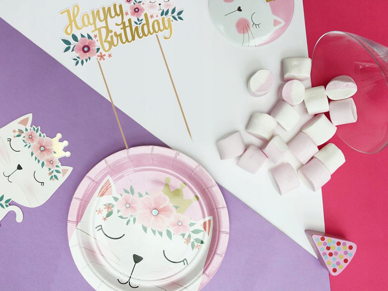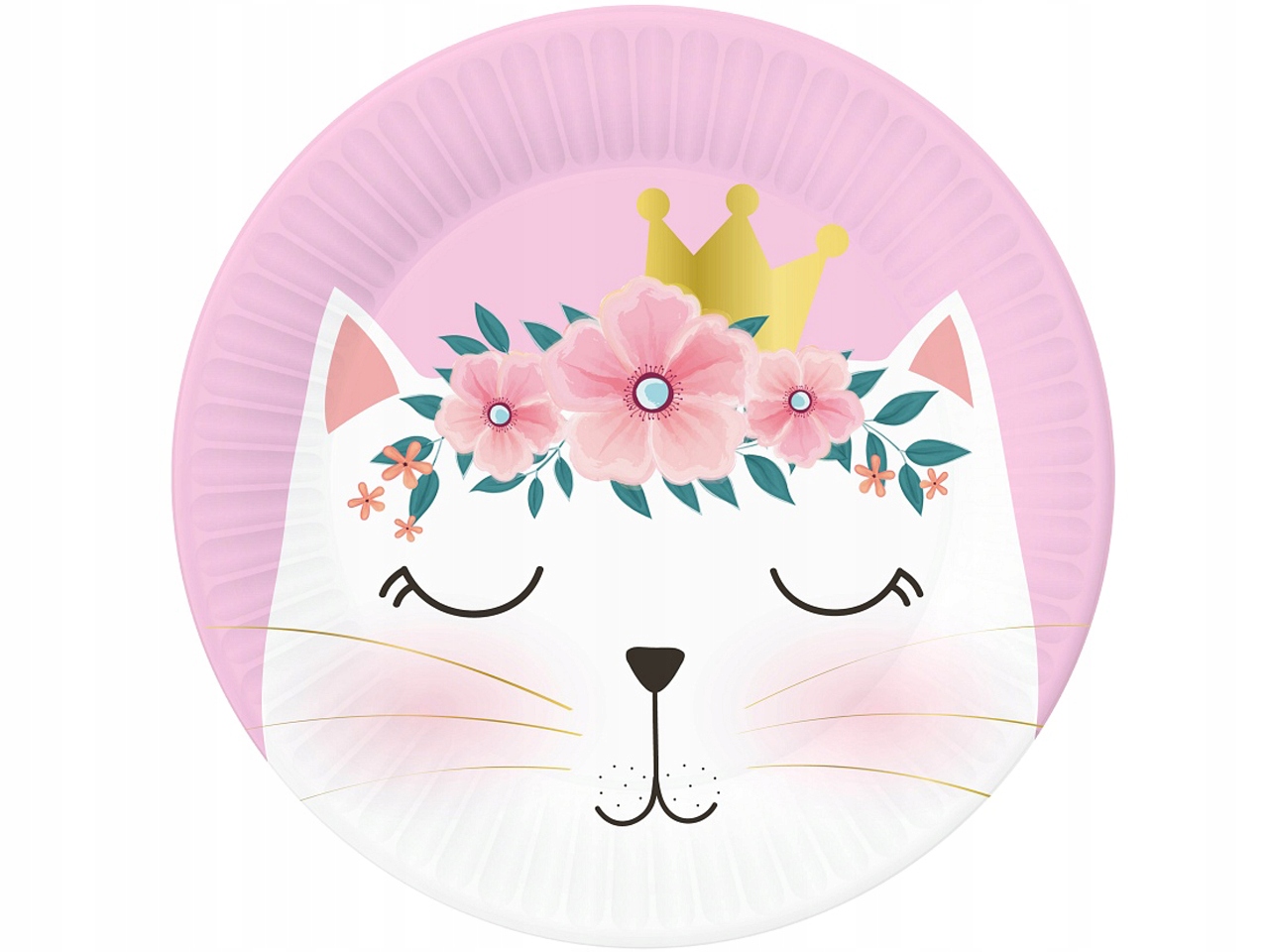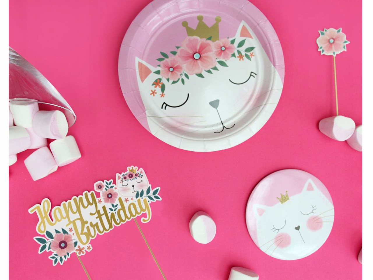 TALERZYKI PAPIEROWE urodzinowe KOTEK kot party TALERZYK 6 szt talerz 18 cm