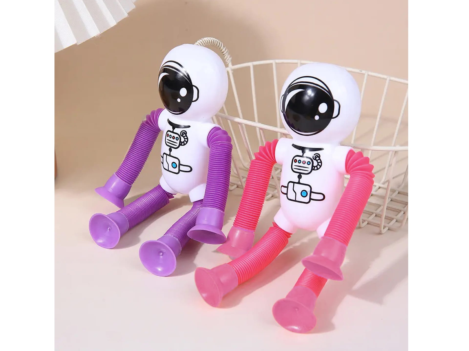 TELESKOPOWA Przyssawka ASTRONAUTA Figurka SPRĘŻYNKA Świeci LED Sprężynowa