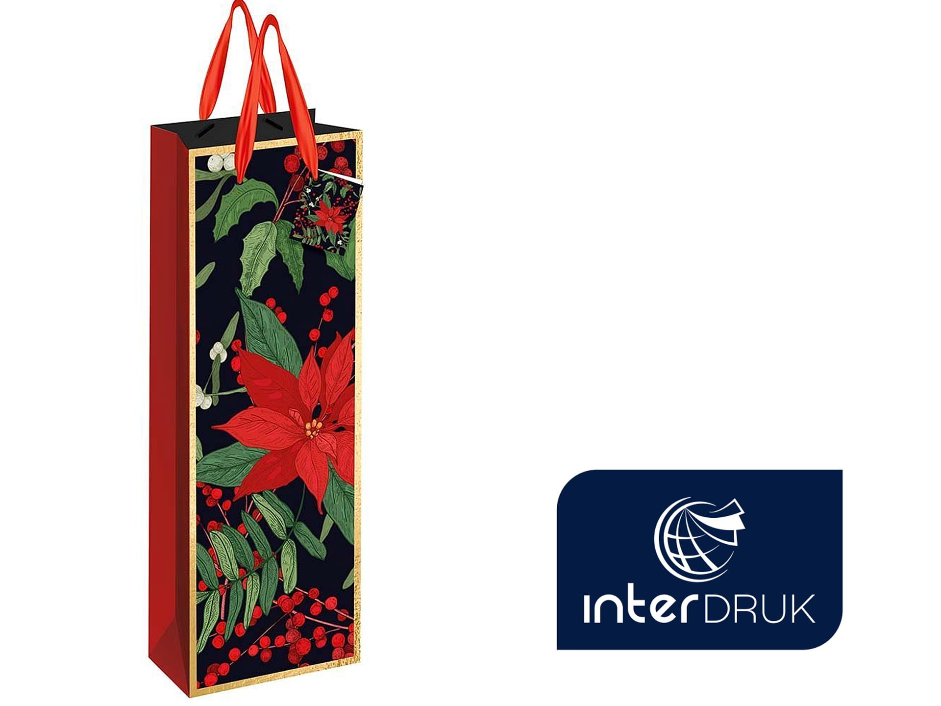 TOREBKA PREZENTOWA na Butelkę 13x36x10 cm ŚWIĄTECZNA Święta MIKOŁAJ Kwiat