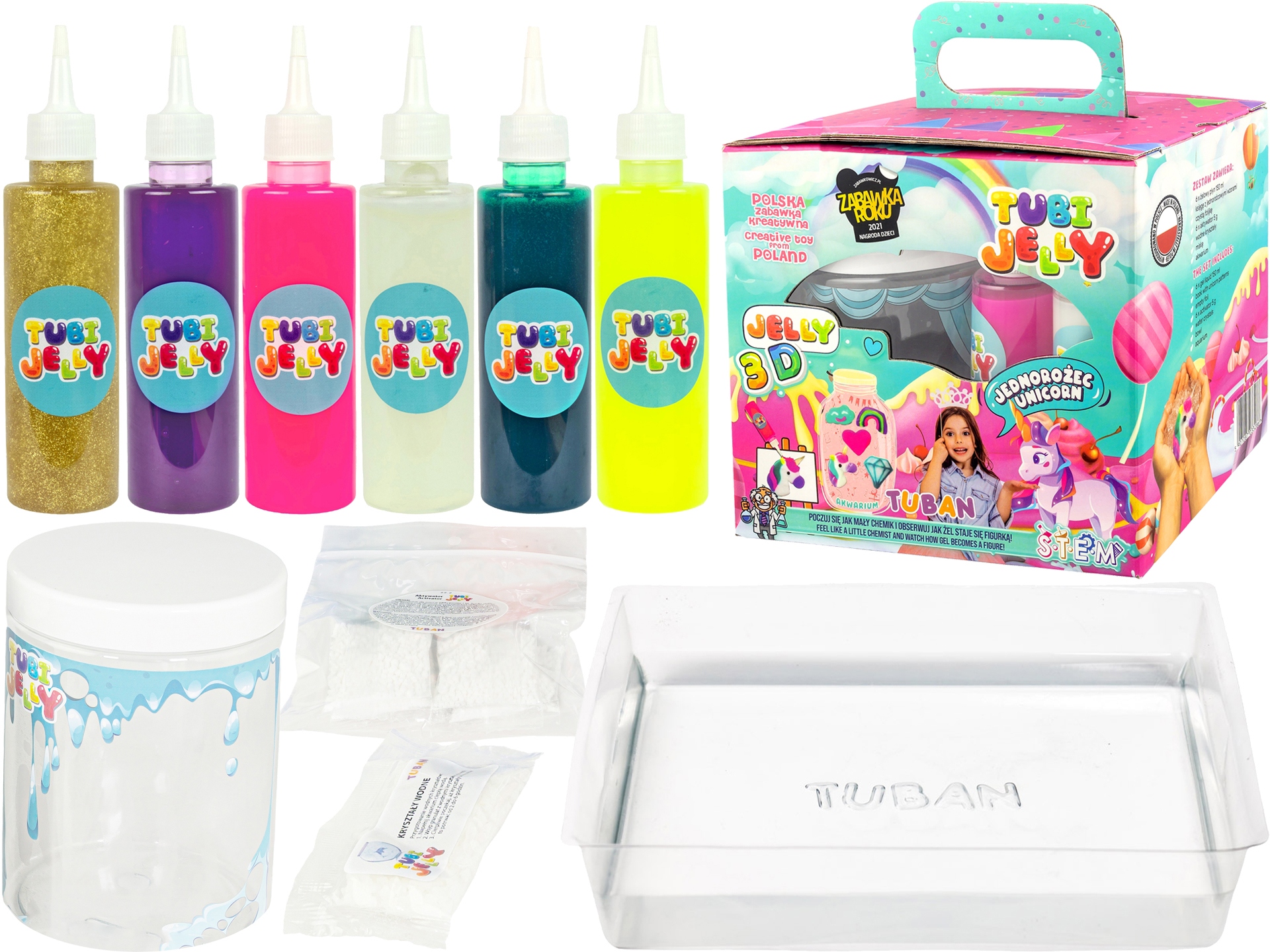 TUBAN Zestaw Tubi Jelly JEDNOROŻEC Masa Plastyczna 6 kolorów + AKWARIUM
