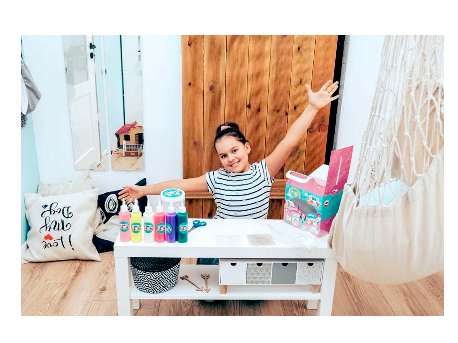 - 6 żelowych płynów 150 ml (złoty brokat, fioletowy, różowy, biały, turkusowy, żółty)