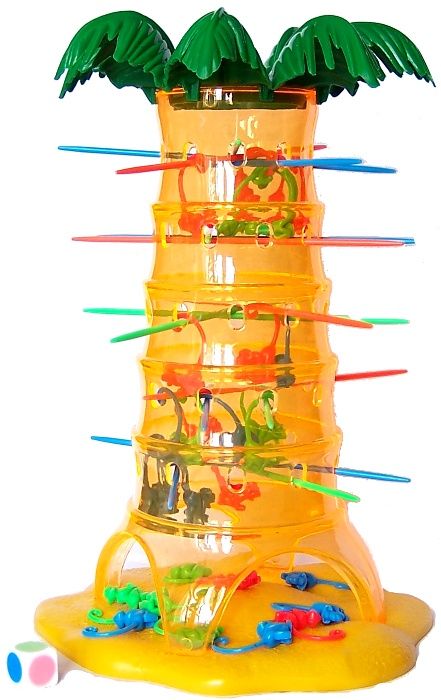 małpki. Grę rozpoczyna się od rzucania kolorową kostką,